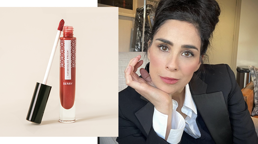 Brett used Farmhouse Fresh's Vitamin Glaze Oil-Infused Lip Gloss in Berry to give Sarah Silverman that perfect pop of color for her appearance. And we have to say, we're loving the result! The vibrant, juicy berry hue complements Sarah's skin tone beautifully, and the glossy finish adds just the right amount of shine.