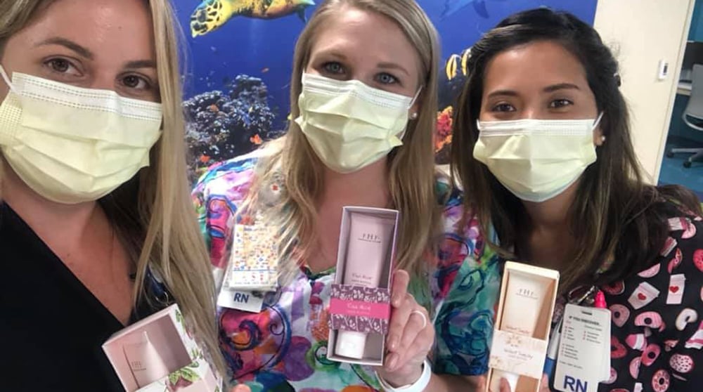 Nurses love FarmHouse Fresh Shea Butter because their hands "get wrecked" -- extremely dry and cracked from gloves and frequent hand washing. They also rave that our skincare products calm facial irritations that come from long hours in the masks and goggles.