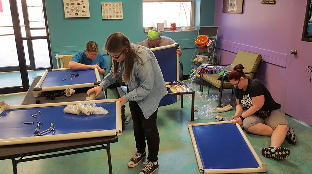 Pet Angels Rescue and Adoption Center in Guthrie Oklahoma, is the first rescue of 2018 to participate in the Dog Bed Fairy Program, thanks to your purchases and Emory Anne Interiors. Flocks of fairies flew to Oklahoma and what a soiree it was! Everyone gathered (like flocks of fairies do!) and assembled 25 Kuranda beds – which is no easy task we must say! This dog bed party was filled with snuggles, smiles and most of all – hope for the dogs receiving these brand new beds. From these beds, our furry friends will feel a little less anxious and more comfortable while they wait for their new families.