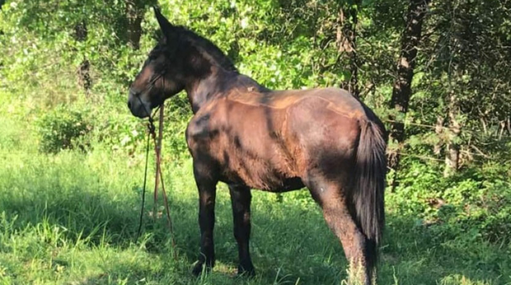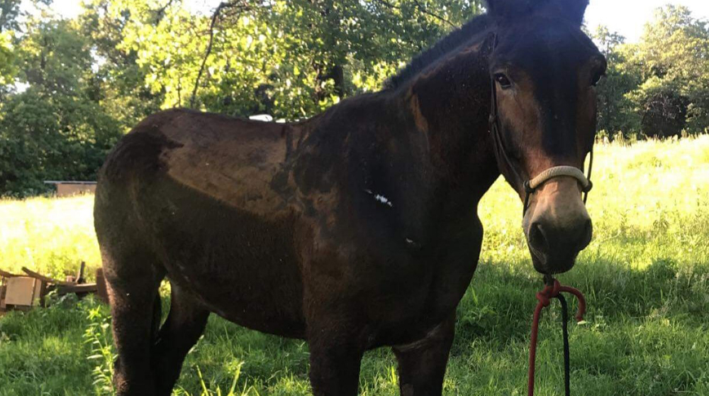Meet Jamison the mammoth mule! He was rescued by our friends at Now That I'm Safe Equine Rescue. He is severely lame with a club foot and was most likely working farm land in this condition his entire life. He has found a home thanks to donations from several donors, including FarmHouse Fresh. Jamison was seen by a vet who confirmed that the mule had cellulitis in his back feet, from years of pulling tractors. It’s not causing pain, however he did get treated with antibiotics. His hoof on the club foot just needs to be cut and trimmed every few weeks. He won’t ever be sound again but he can still live a happy life being a pasture pet. The vet also determined that Jamison is 10 to 12 years old.