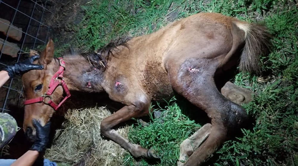 At 11:30 on a Saturday night in June, a call went out for urgent help. A 3 month old foal named Trouper, who was already very thin and weak, had been attacked by a dog. When news broke, Miss Jo’s Rescue Ranch and Now That I’m Safe Equine Rescue stepped in, issuing a call for donations to get this baby transported to them for hospital care.