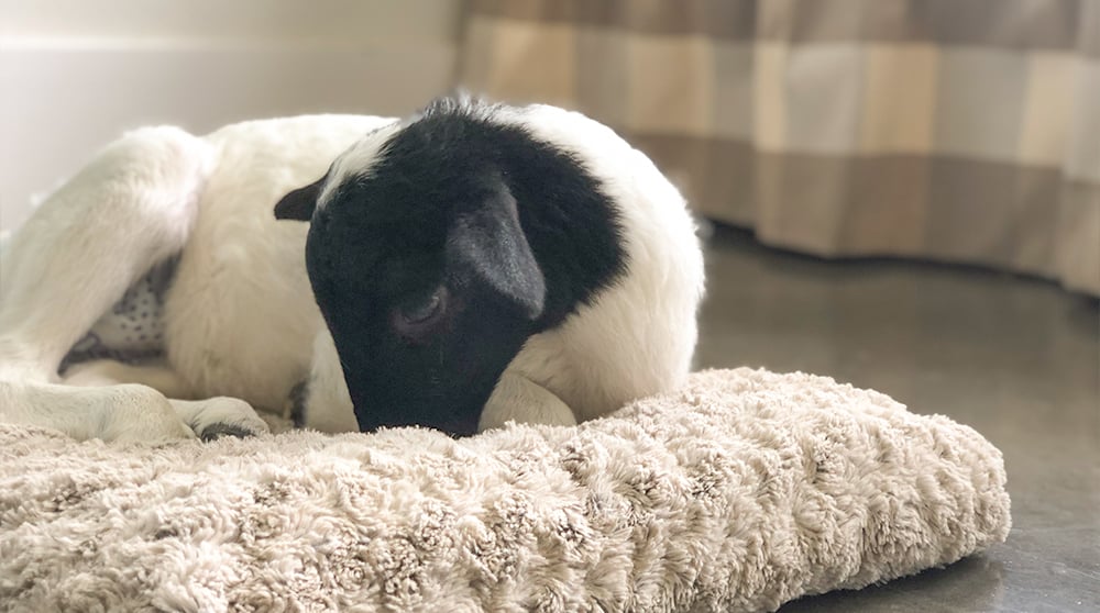 Blossom got a rough start! She arrived after accidentally eating clovers in a pasture, and nearly dying of frothy bloat. In her first few weeks with us, we knew something wasn't right. We struggled to find the right balance of bottle feeding, yogurt, creep feed and hay. She would appear painful, sometimes bloated, sometimes just lethargic, and we were on constant speed dial to Dr. Avery. Several sleepless nights fraught with worry, Laurie, our Sanctuary Manager administered baking soda solutions, or Pepto Bismo because this little nugget would just suddenly tank - her spirits, her head dropped, she'd cry in pain for hours ...