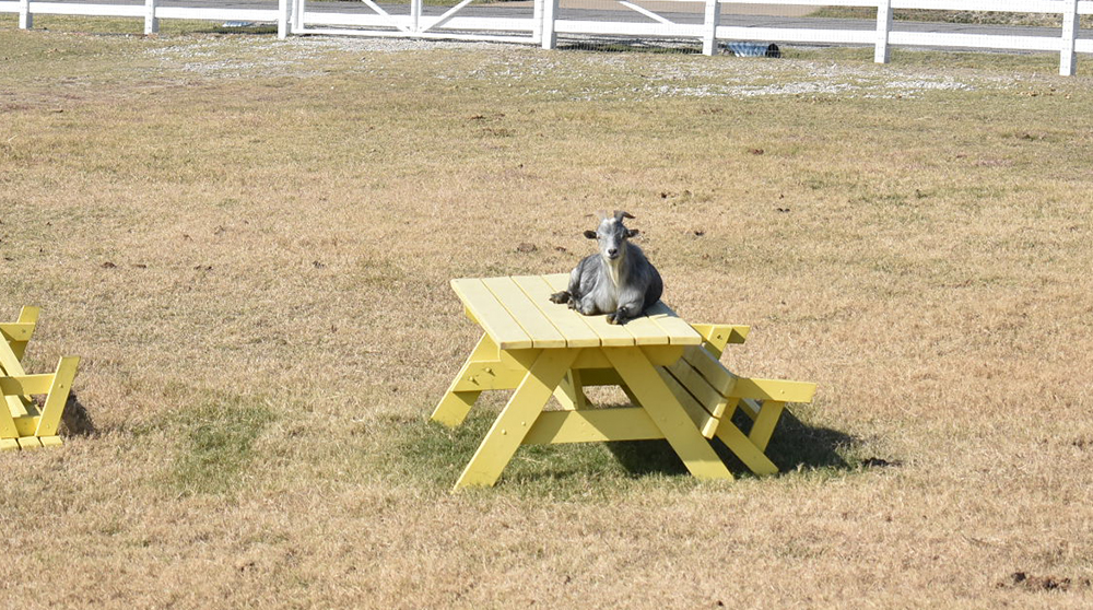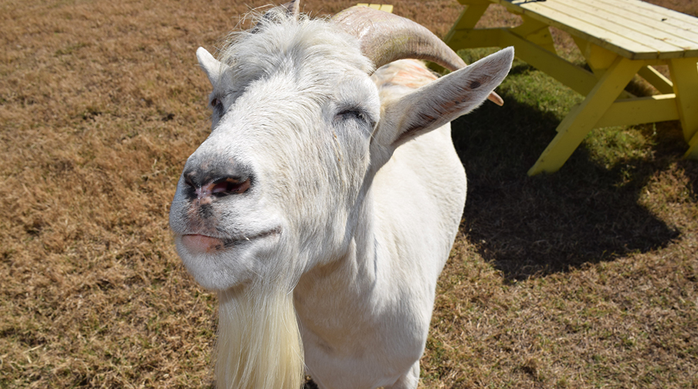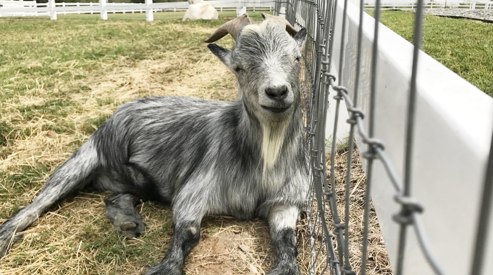 Meet Lolly (the white Alpine on the left) and Pops (the little gray man). Lolly was surrendered to the North Texas Humane Society -- sadly he was being kept in a tiny space by his previous owners who claimed Lolly became mean (imagine that?!). This beautiful man is our equivalent of a lap dog. One scratch and he follows you toe-to-toe begging for more. Our horses love him... like loooooove him.... licking his horns and ears for long enough periods of time that Lolly actually falls asleep!