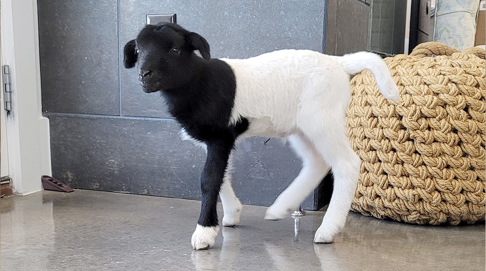 We received a call from a local resident who witnessed a neighbor's sheep reject it's baby, and instead of allowing the baby to be euthanized as they so often are, she asked the farmer if she could take him. She made all the right moves - buying colostrum, following a feeding schedule, and for the first few days of his life she did everything she could to make sure he would survive. And then she called us!