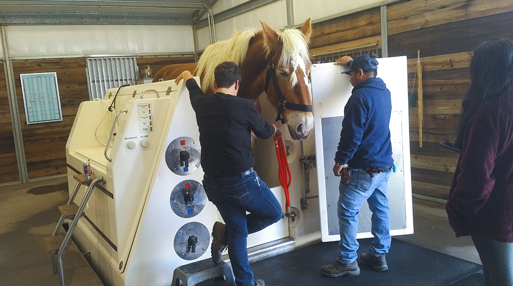 The difficulty with fluid buildup in the leg is that it hinders blood flow. So wounds just don't want to heal. We'd been researching unique treatments (we didn't rule out leaches!) and Dr. Avery recommended salt water therapy. We happen to have one of the premier hydrotherapy clinics in the country, just 20 minutes from the ranch! Equine Salt Water Therapy. Willow would need to be transported, and stay for several weeks at the center to receive daily cold salt water therapy treatments where 35 degree water with epsom salts envelops the leg to encourage blood flow and healing.