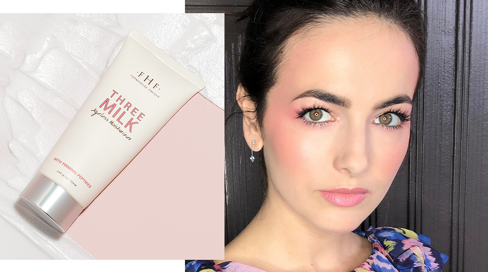 “To give Camilla’s face extra glow, I prepped her skin with Farmhouse Fresh’s Three Milk ageless moisturizer. Dewy delish!”